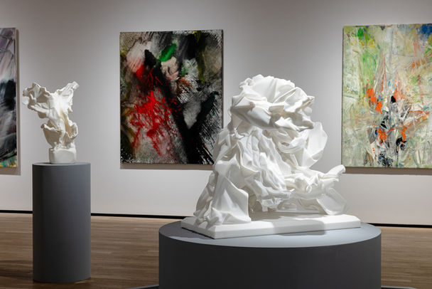「記憶中的風景」系列作品以連續編號命名,似乎記錄了記憶的瞬間,同時也引發了兩種看似迥異、實則相互構成的創作途徑:力求表達主體精髓的中國水墨畫及其豐富的筆墨傳統,以及日本具體派運動,該運動主張既不「改變」也不「扭曲」物質,而是「賦予其生命」。顯而易見地,兩者皆體現了核心邏輯:致力於捕捉內在的本質——對中國水墨畫而言是主體,就具體派而言則是媒介本身。